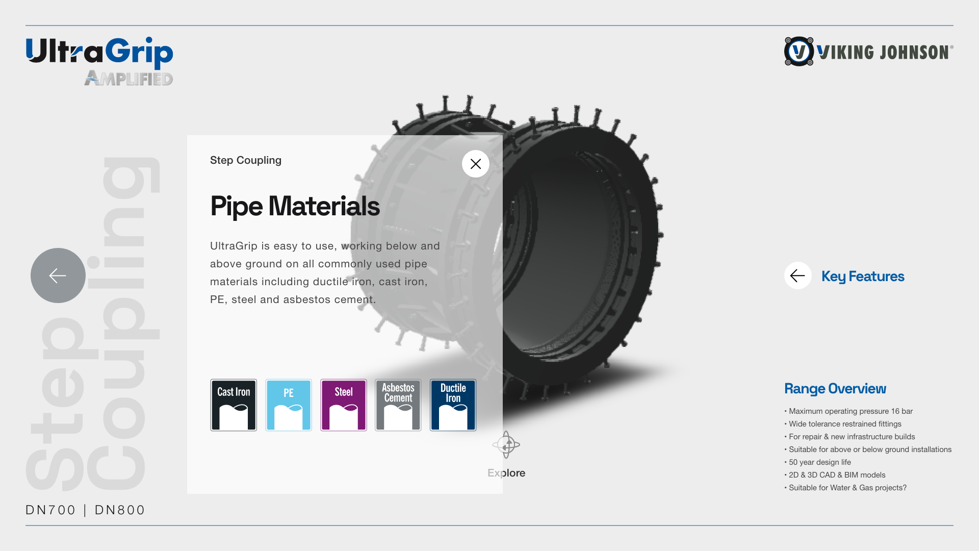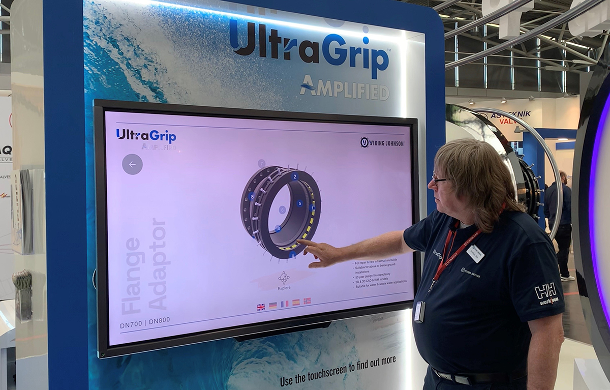 We worked extensively with Viking Johnson a few years ago with Presentia presentations, so they recently approached us to create an interactive touchscreen presentation for their trade stand at IFAT Munich, Germany.